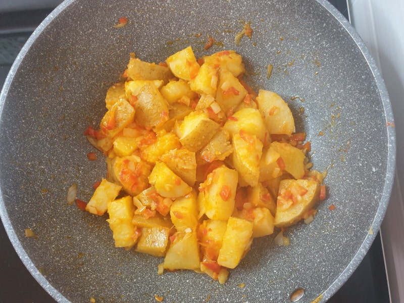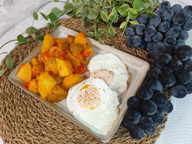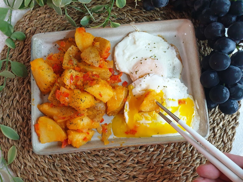 물기를 뺀 감자를 넣고 골고루 볶아 버터의 향을 흡수시킨다. 이때 소금을 약간 넣고 간을 맞춰줄게요. 제가 사용한 버터는 무염이 아닌 가염이라 소금을 조금 넣었습니다. 다진 양파와 파프리카를 넣고 5분간 볶는다. 5분 후 다진마늘 반스푼, 고춧가루 1스푼을 넣고 3분간 더 볶다가 개인의 취향에 따라 고춧가루 대신 고춧가루를 사용해도 된다. 아침에 바로 먹을 수 있어서 파프리카를 이용해서 속이 편해졌어요. 비어서 계란후라이 하나 추가하고 삶은감자요리만 먹었습니다. 계란후라이는 반숙으로 함께 드셔야 요리의 진가를 맛볼 수 있습니다. 마지막에 파슬리 가루를 뿌린다. 감자와 볶음밥을 얹은 후 계란 노른자를 살짝 터뜨리고 감자를 계란 노른자에 담그면 정말 맛있습니다. 아이들을 위해 만들때 레시피대로 하시거나 덜 맵게 고춧가루를 넣어 주시고, 어른들이 맵게 드실때 드시면 됩니다. 오늘은 간단한 감자 껍질 효과와 맛있는 데친 감자 요리를 만들어 봤습니다. 영양과 맛 모두 만족스럽고 남녀노소 누구나 좋아하는 진미입니다.
