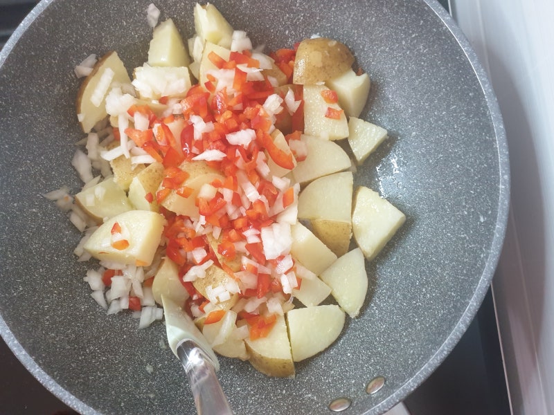 감자 대신 양파 반개와 파프리카를 잘게 썬다.